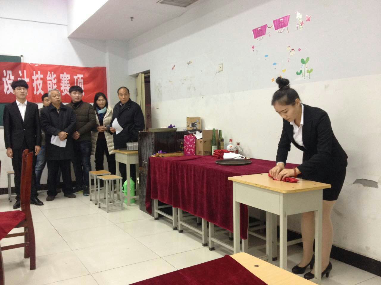 為了充分展示學(xué)生的才華和技能,豐富學(xué)生的業(yè)余文化生活,我系旅游管理專業(yè)于2016年12月16日在酒店實訓(xùn)大廳舉行了技能大賽。在系領(lǐng)導(dǎo)的關(guān)心與支持下,在輔導(dǎo)員老師積極組織協(xié)調(diào)下,在我們學(xué)生的共同努力、相互協(xié)作、各部門各司其職下,此次技能大賽取得了圓滿成功。