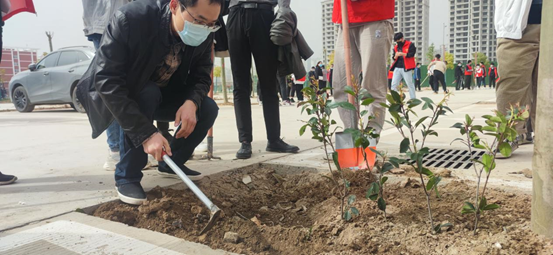 學(xué)院領(lǐng)導(dǎo)對本次活動極為重視。在學(xué)院黨總支書記王力偉、團總支書記張靖文的帶領(lǐng)下,參與活動的同學(xué)們積極熱情的投入了活動中。師生一起動手,如火如荼地進行植樹活動。他們親手小心翼翼地剝?nèi)涿绲谋Wo膜,在領(lǐng)導(dǎo)們的指導(dǎo)下,深挖坑,多培土,用手中的鋤頭和鏟子挖下一個個深坑,一起種上一棵棵希望之樹,并認(rèn)真澆灌上一桶桶春天的甘泉。不一會兒的功夫,空地上就栽滿了樹苗。大家你看看我,我望望你,都露出了喜悅的笑容。雖然累了,衣服臟了,但師生們都毫不在意,仍繼續(xù)埋頭苦干。當(dāng)植樹活動結(jié)束后,師生們意猶未盡,還希望能多為校園、為社會種一棵樹,留一片藍天。他們紛紛感嘆道:多年后的河南科技職業(yè)大學(xué),該是如何一番繁花似錦啊。今日的播種,意義非凡,利己利校利國!