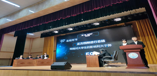 決賽中對(duì)峙的分別來(lái)自9001cc金沙的“不拿冠軍就是我不對(duì)”隊(duì)和辯論社“唔西迪西瑪卡巴卡”隊(duì),辯論的主題是“網(wǎng)絡(luò)對(duì)大學(xué)生的影響是利大于弊還是弊大于利?”主持人簡(jiǎn)單介紹評(píng)委嘉賓和兩方辯手后,比賽即開(kāi)始了。雙方的開(kāi)篇陳詞都十分犀利,評(píng)委嘉賓都被他們的氣勢(shì)和精彩言論所吸引。雙方的二、三辯也將攻辯階段打得十分有激情,他們拋給對(duì)方雙關(guān)性比較強(qiáng)的難題,回答對(duì)方的問(wèn)題也是臨危不懼。而最激情四溢還是自由辯論環(huán)節(jié)莫屬了,兩方辯手據(jù)理力辯、你推我擋,既激情盎然又從容不迫,而臺(tái)下觀眾也聽(tīng)得熱血沸騰,恨不得上臺(tái)同辯手們爭(zhēng)個(gè)雌雄。雙方四辯的總結(jié)陳詞不僅指出對(duì)方在比賽過(guò)程中暴露的問(wèn)題,還分點(diǎn)論述更加強(qiáng)了自方的觀點(diǎn)。比賽結(jié)束后,評(píng)委們對(duì)此次比賽進(jìn)行了詳細(xì)點(diǎn)評(píng)。她細(xì)評(píng)了各方的優(yōu)點(diǎn)和不足,肯定了辯論過(guò)程中一些精彩指出,也惋惜在自由辯論階段中一些暴露出來(lái)卻沒(méi)有被提出的論點(diǎn),整場(chǎng)比賽都被她剖析得精細(xì)而準(zhǔn)確。最終經(jīng)過(guò)激烈的辯論,聽(tīng)取評(píng)委意見(jiàn)并收集票數(shù)后“不拿冠軍就是我不對(duì)”最終確定決賽的勝利。比賽結(jié)束后尚尚處長(zhǎng)對(duì)比賽的兩個(gè)隊(duì)伍進(jìn)行了精彩點(diǎn)評(píng),同時(shí)也對(duì)廣大學(xué)生提出了新的價(jià)值觀念,也鼓勵(lì)我們廣大學(xué)生砥礪前行,奮勇向前。