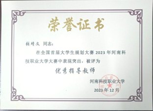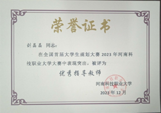 比賽獲獎(jiǎng)不僅是對(duì)獲獎(jiǎng)選手們的支持和鼓勵(lì),更是對(duì)獲獎(jiǎng)選手身后的指導(dǎo)老師的肯定。在本次大賽中,我院劉晶晶、張靖文兩位老師被評(píng)為“優(yōu)秀指導(dǎo)教師”。