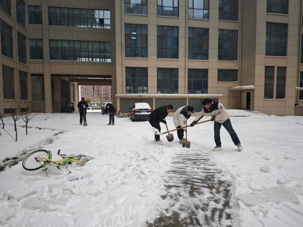 鏟雪工作足足進(jìn)行了三個(gè)多小時(shí),盡管大家的臉都凍得通紅通紅,但是這一切絲毫沒(méi)有影響志愿者的熱情和效率,手中的掃雪工具依然不停地?fù)]舞著,忙得渾身是汗,校園道路清掃的干干凈凈。每一位辛苦付出的學(xué)生在皚皚白雪中成為一道靚麗的風(fēng)景,讓這個(gè)冬日變得格外燦爛和溫暖。